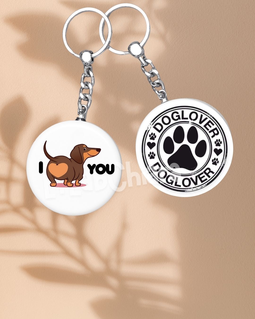 1 Portachiavi in MDF (legno) con stampa sublimata fronte retro a tema Amore per i cani Bassotti (come da foto).