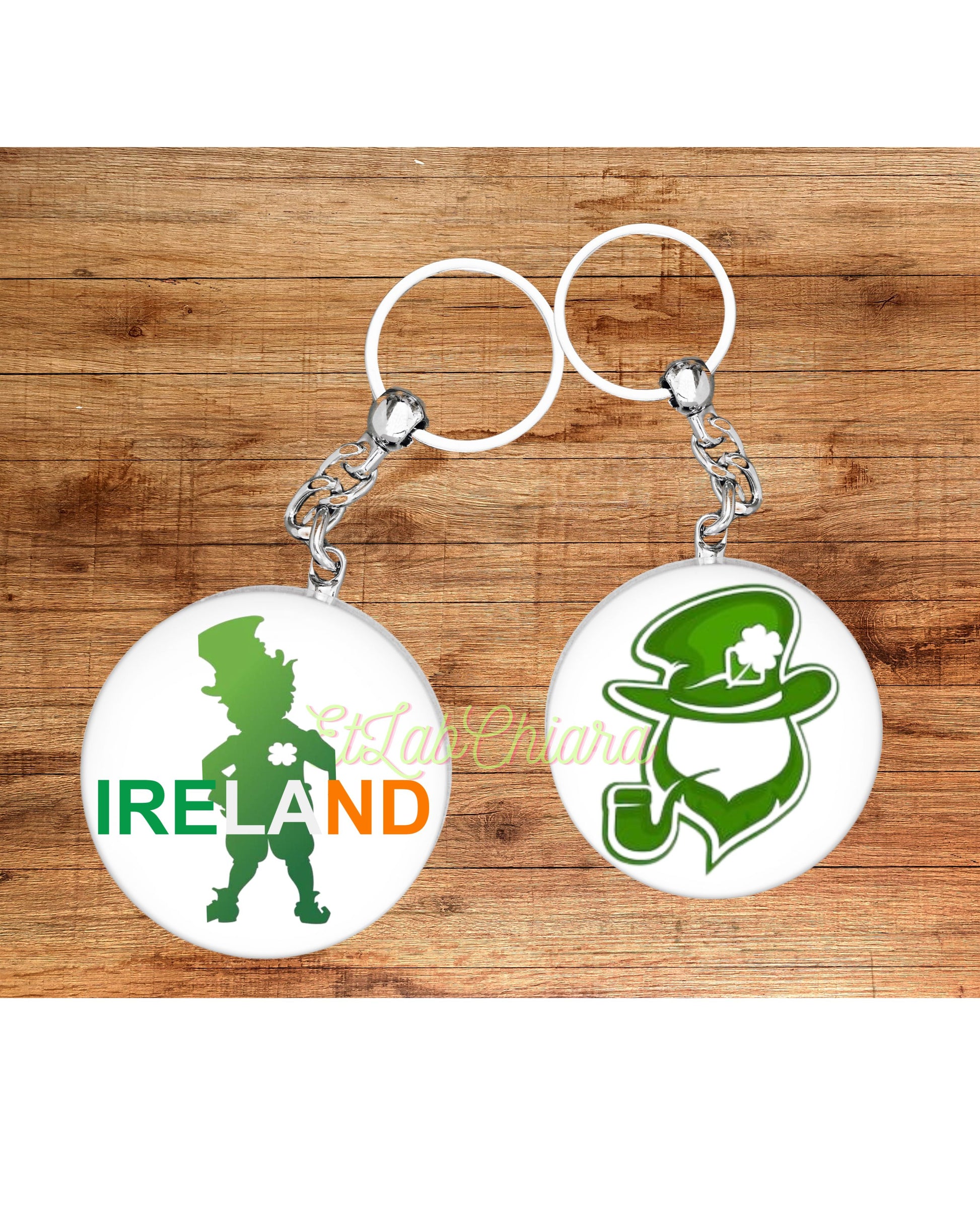 1 Portachiavi in MDF (legno) con stampa sublimata fronte retro (come da foto) a tema Leprecauno Irlandese.