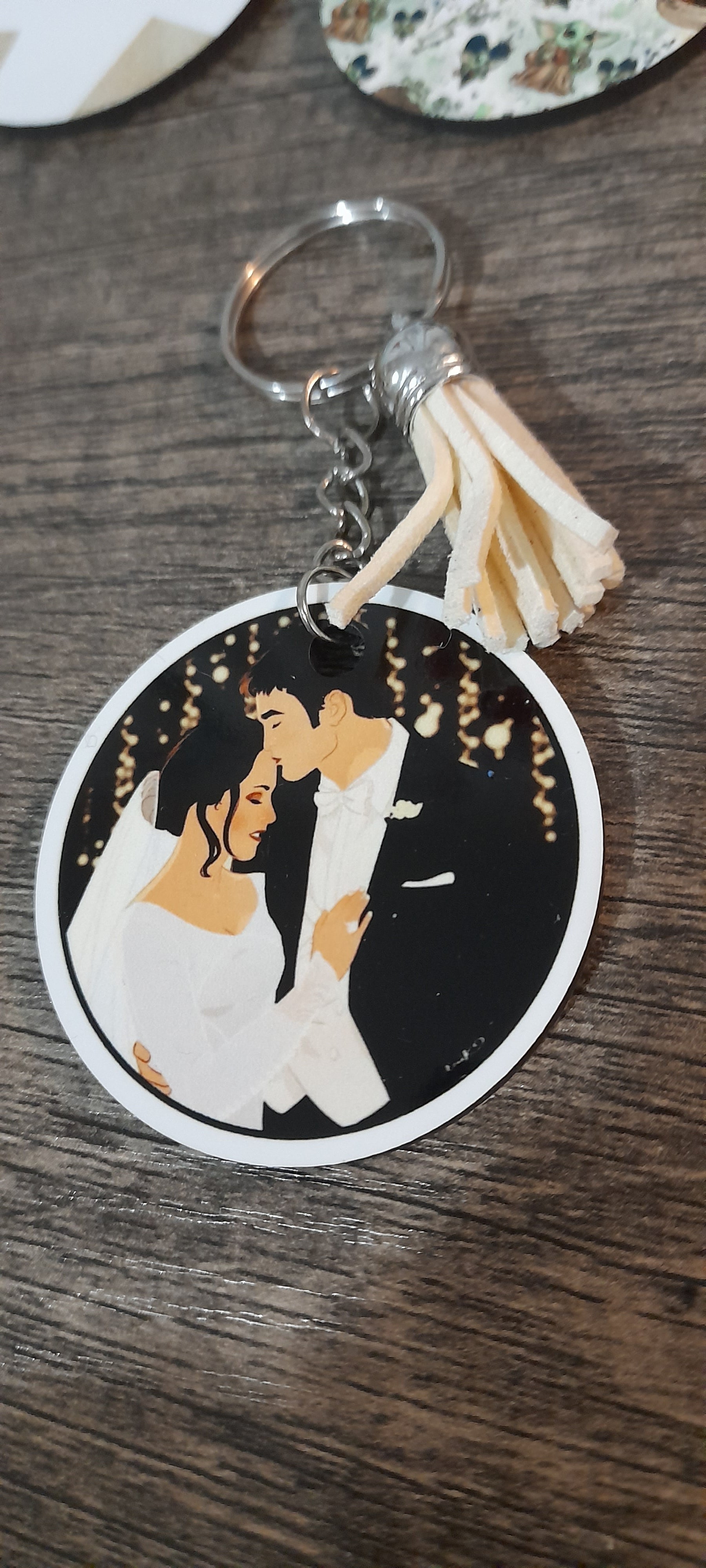 1 Portachiavi in MDF con stampa sublimata fronte retro come da foto, a tema Twilight Wedding con Edward e Bella.