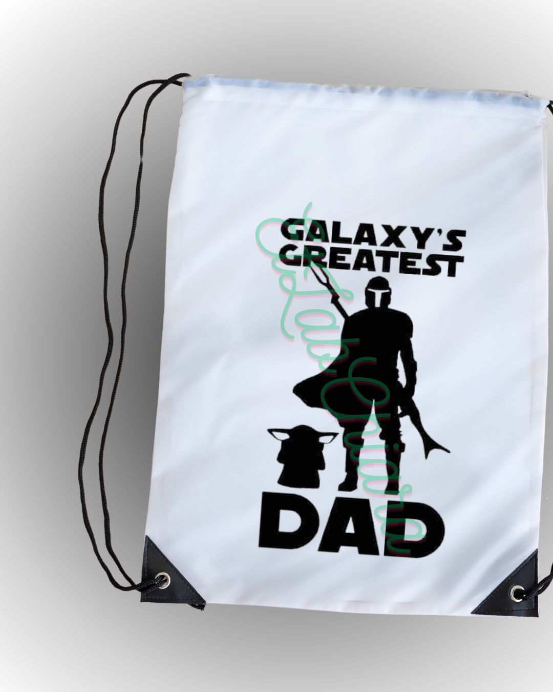 Sacca in poliestere con stampa sublimata solo sul fronte a tema "Miglior papà della Galassia".