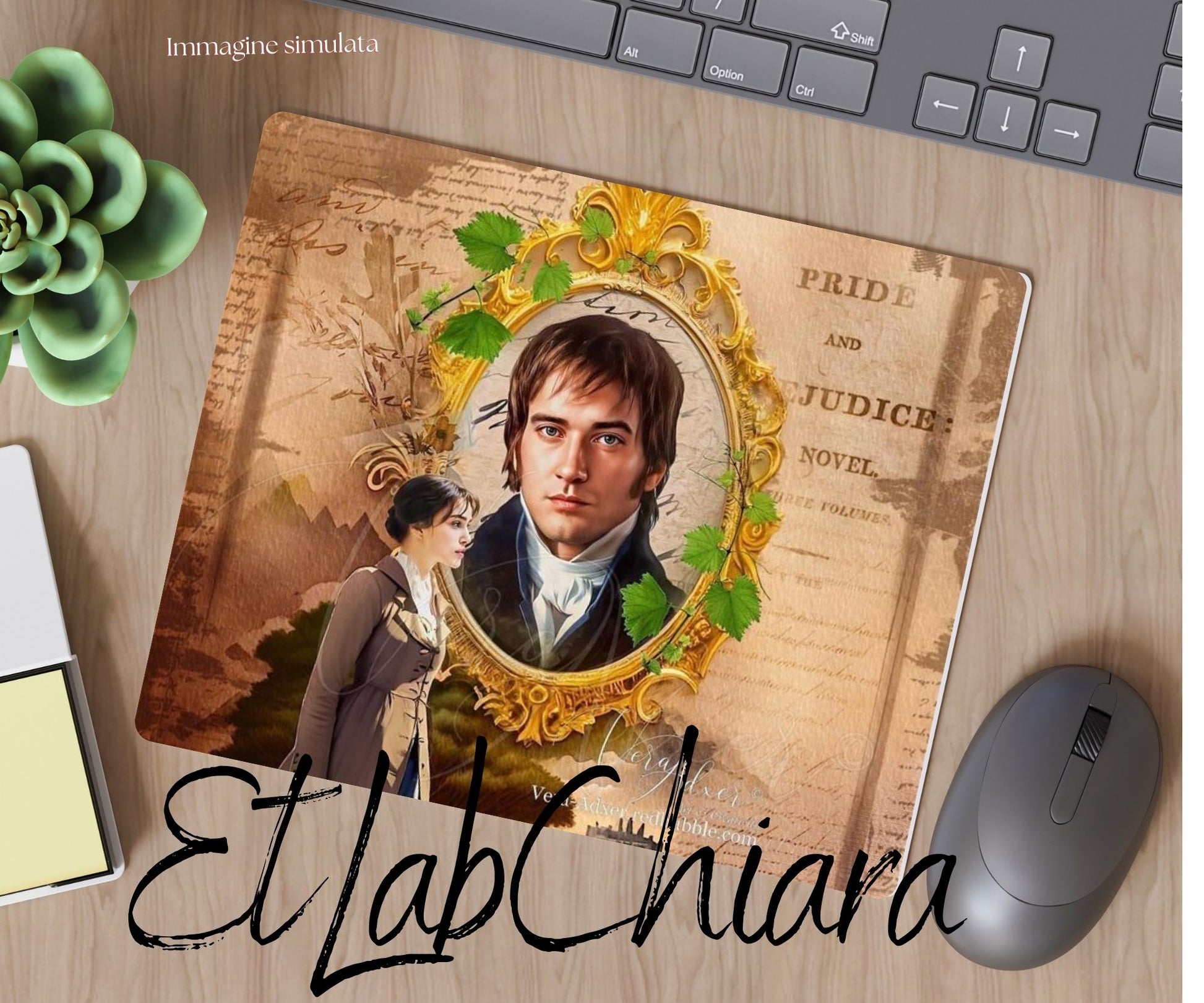 Tappetino Mouse con stampa sublimata liberamente ispirata ad Orgoglio e Pregiudizio di Jane Austen. Misure 23,5x19cm circa.