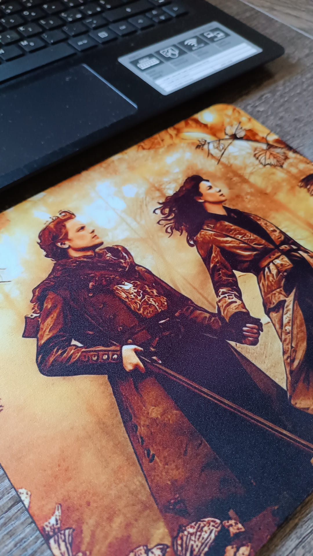 Tappetino Mouse con stampa sublimata ispirata ai personaggi di Outlander, Claire e Jamie.