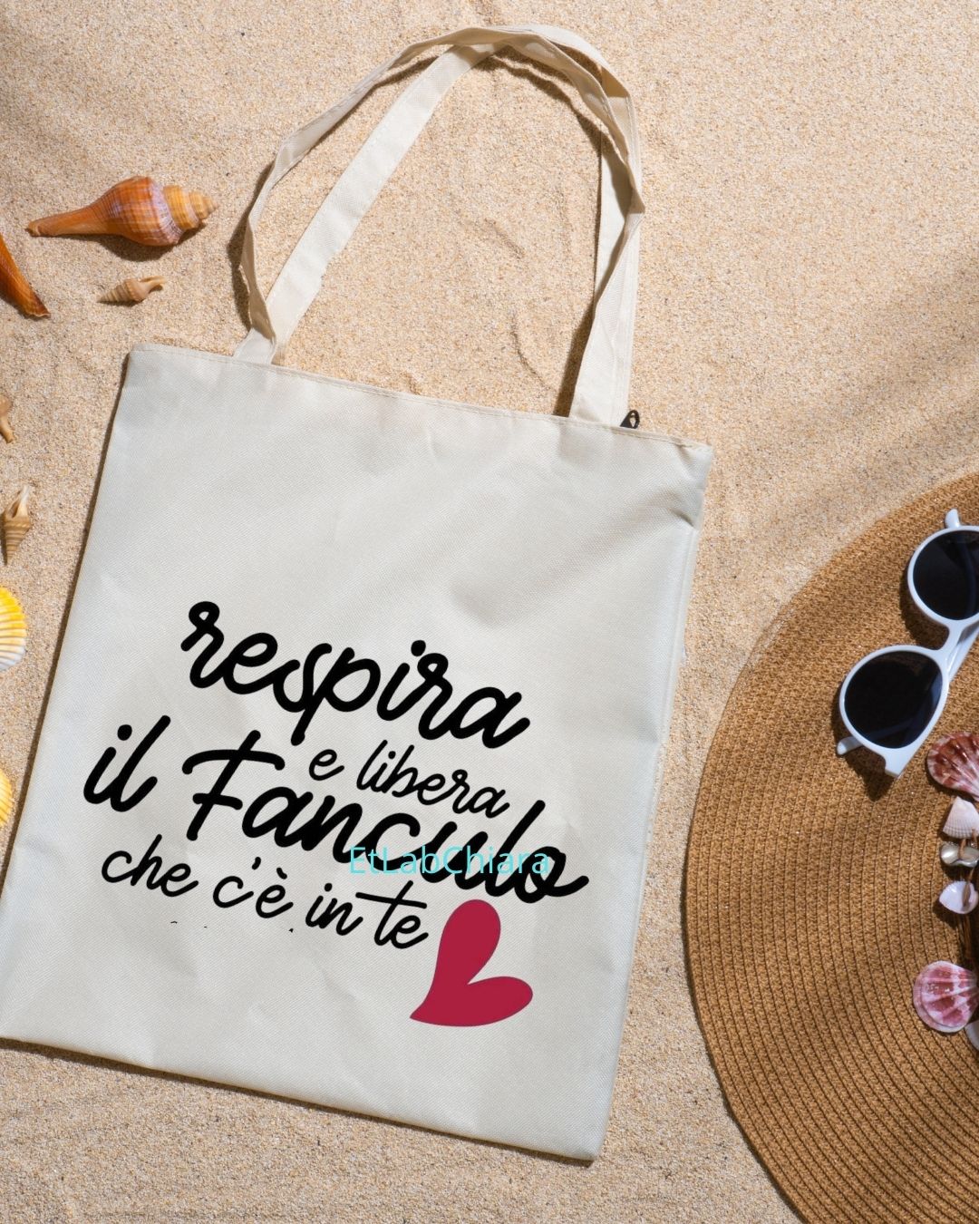 Tote Bag in cotone con frase ironica sublimata in vinile (solo su un lato).