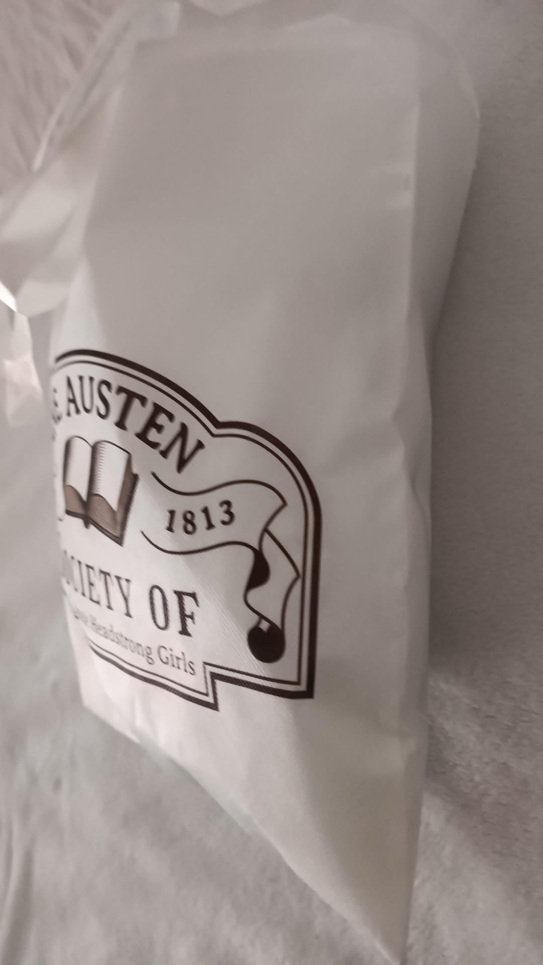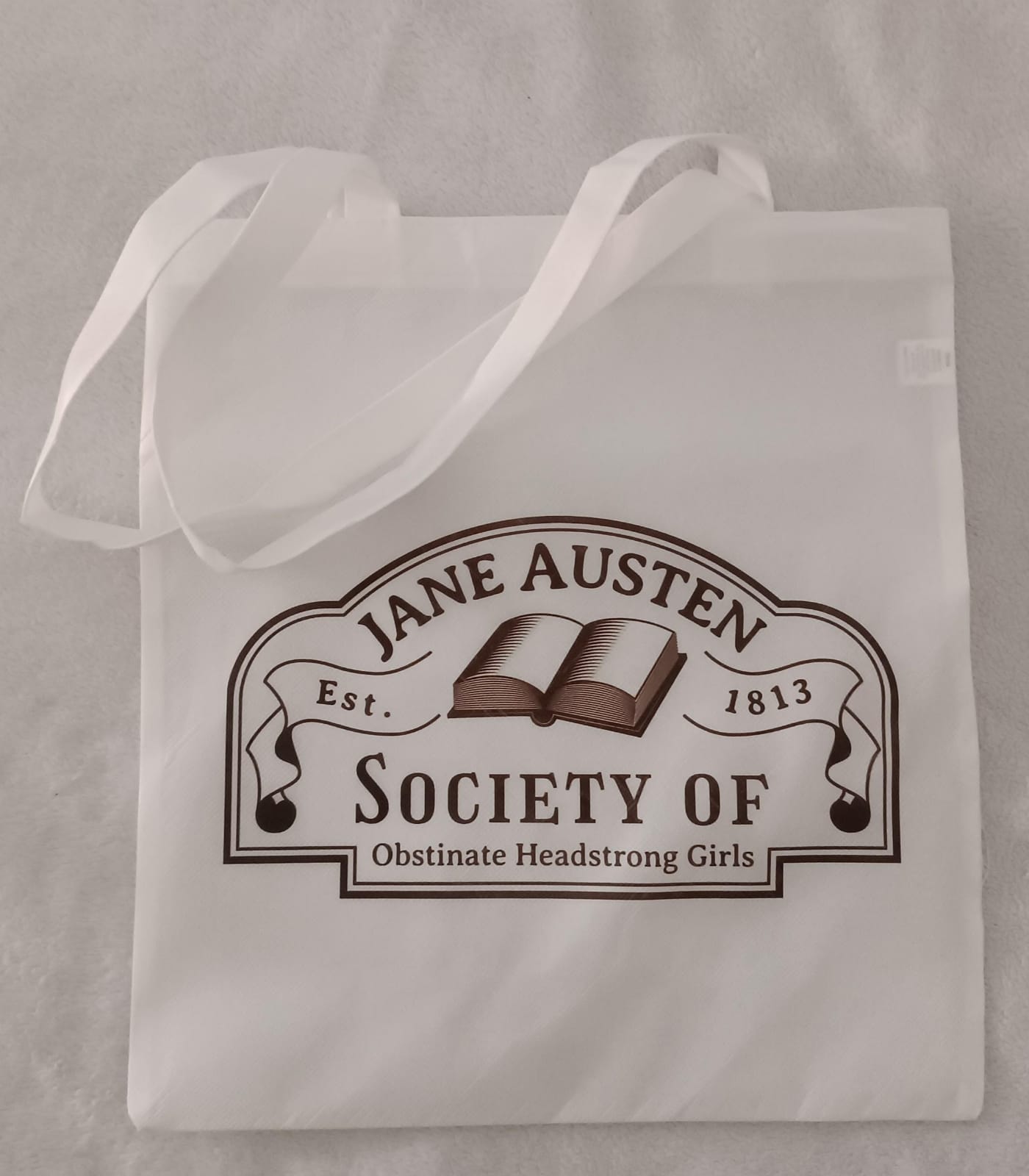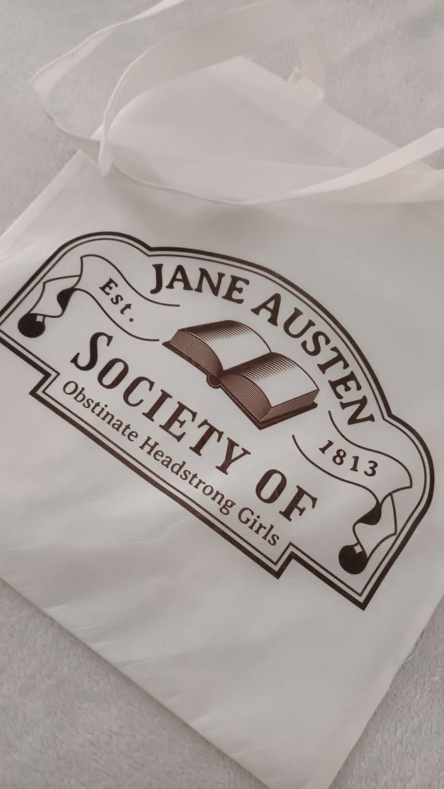 Tote Bag in TNT (TESSUTO NON TESSUTO) con stampa sublimata ispirata a Jane Austen, stampa solo sul fronte come da foto.